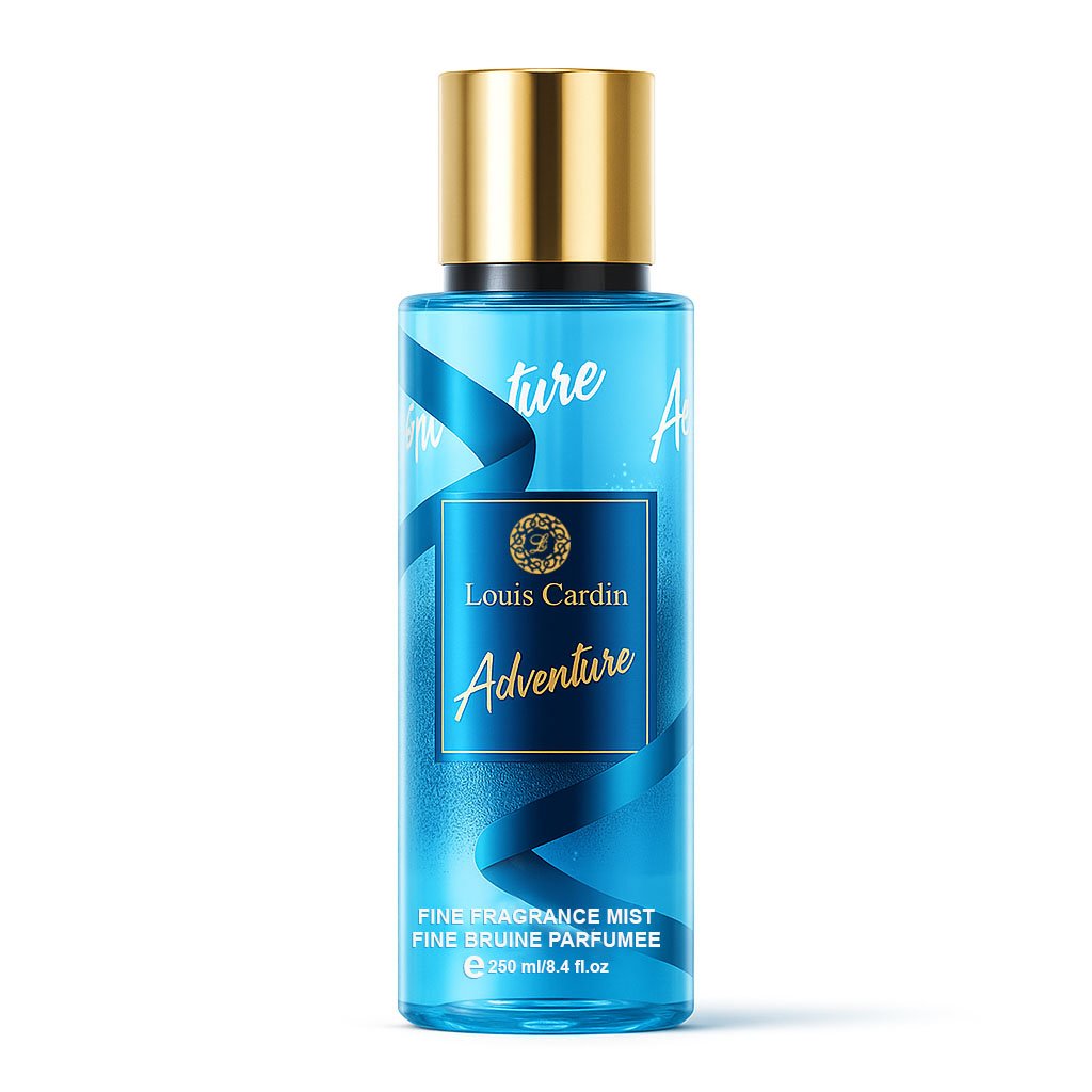 Adventure  Body Mist  Opens with Fresh Top Notes of Cardamom, Lemon, Mandarin, Marine Notes Giving Way to Floral Chocolate Middle Notes of White Flowers, Caramel, Cedarwood, Pepper and Lands on the Base Notes of Musk, Vanilla, Tonka Bean, White Musk
