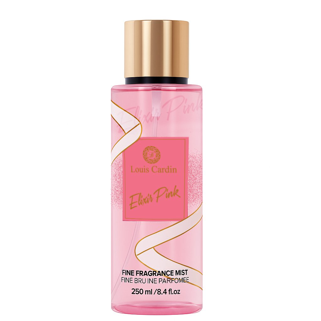 Elixir Pink  Body Mist  Opens with Fresh Fruity Top Notes of Pear, Black Currant Giving Way to Middle Notes of Jasmine, Orris and lands on the Base Notes of Patchouli, Praline, Vanilla