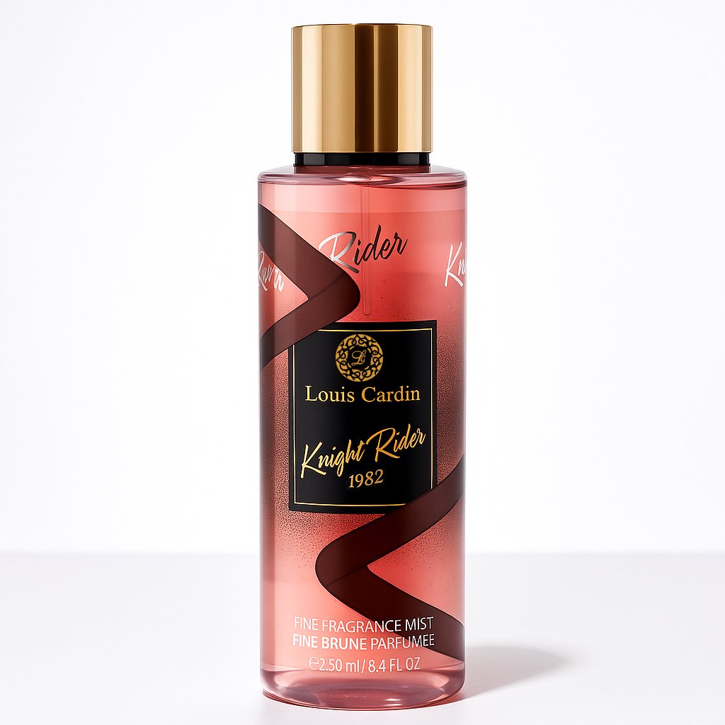 Knight Rider  Body Mist Opens with Fresh Fruity Top Notes of  Cinnamon, Lemon, Apple Giving Way to Middle Notes of Lavender, Lily of the Valley, Violet and lands on the Base Notes of Tonka Bean, Vanilla, Patchouli.